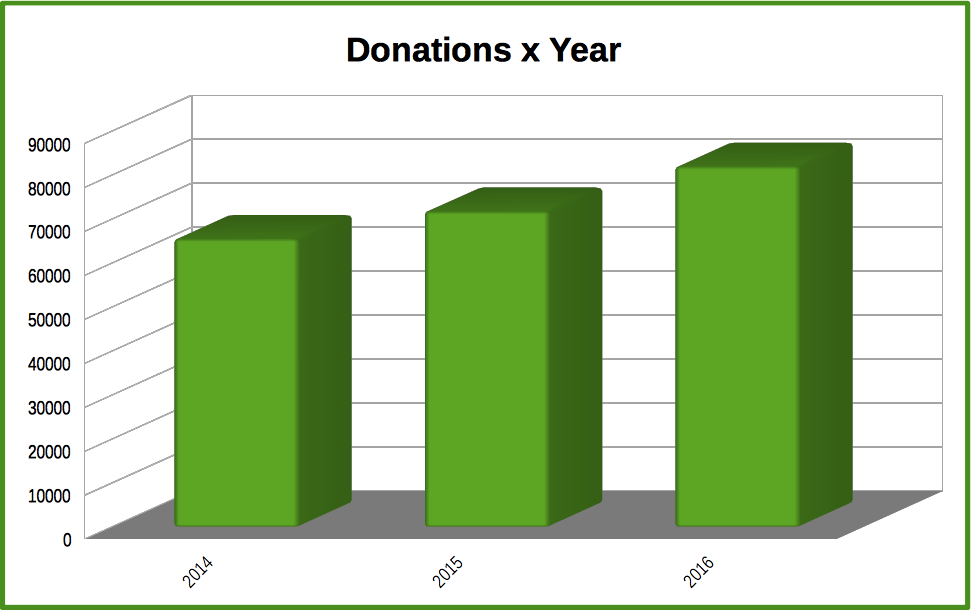 In 2016, donations have been 82,036 (a 14.2% increase over 2015).
